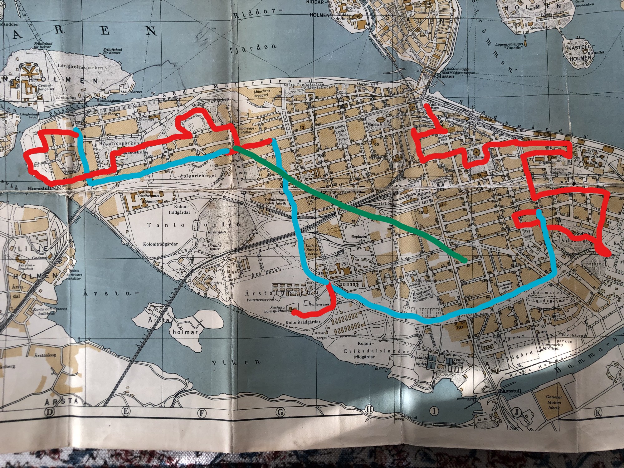 Inte kunde vi ana vad som komma skulle när vi började blogga om vår staycation i Stockholm i februari. Då var coronavirus nånting långt borta i Asien och vi planerade för att åka på tågluff i Östeuropa i maj. Men eftersom vi tycker att det är så givande att resa med gamla guideböcker så beställde vi den 10 februari från Stadsbiblioteket boken ”Stockholm på 8 dagar” av vår favoritguide Ellen Rydelius. Boken kom ut lagom till Stockholmsutställningen 1930. Här skulle vandras i hennes fotspår. Och medan vi gjorde det så kröp det otäcka viruset allt närmare. Termen Covid-19 var ännu inte känd. I de första inläggen syns ingen oro, men i de sista inläggen verkar vi förstå att vi ska akta oss. Så lägg till handtvätt och social distansering, sen är det bara att köra.