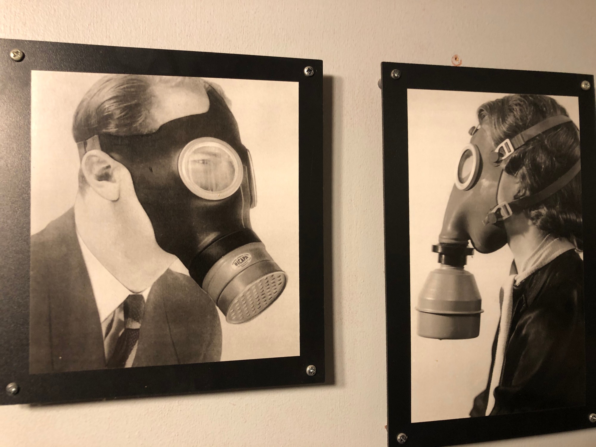 Vi hade vissa förhoppningar på att få äta ransonerad beredskapsmat när vi var där. Men hör och häpna, folk vill inte ha det. Museets lilla cafe har försökt att servera ”Veckans ranson”, det var en silltallrik, men den sålde inte. Då bytte de namn till ”Silltallrik” och då fick den plötsligt en strykande åtgång. Går man inte på museum för att få en upplevelse? Så serveringens disk är numera full av tråktraditionell kaféföda; bullar, mackor, chokladbollar och dammsugare. Men vi VILLE HA kristidsmat. Då dök Marie ner i frysen och tinade upp några kristidsmuffins. – Vi vill ha kaffesurr också, sa vi. Och det var lättare. Det finns nån slags pulverkaffe gjort på cikoria att köpa på nätet. Så det blev lite beredskapsfika i alla fall. Att det ska vara så svårt.