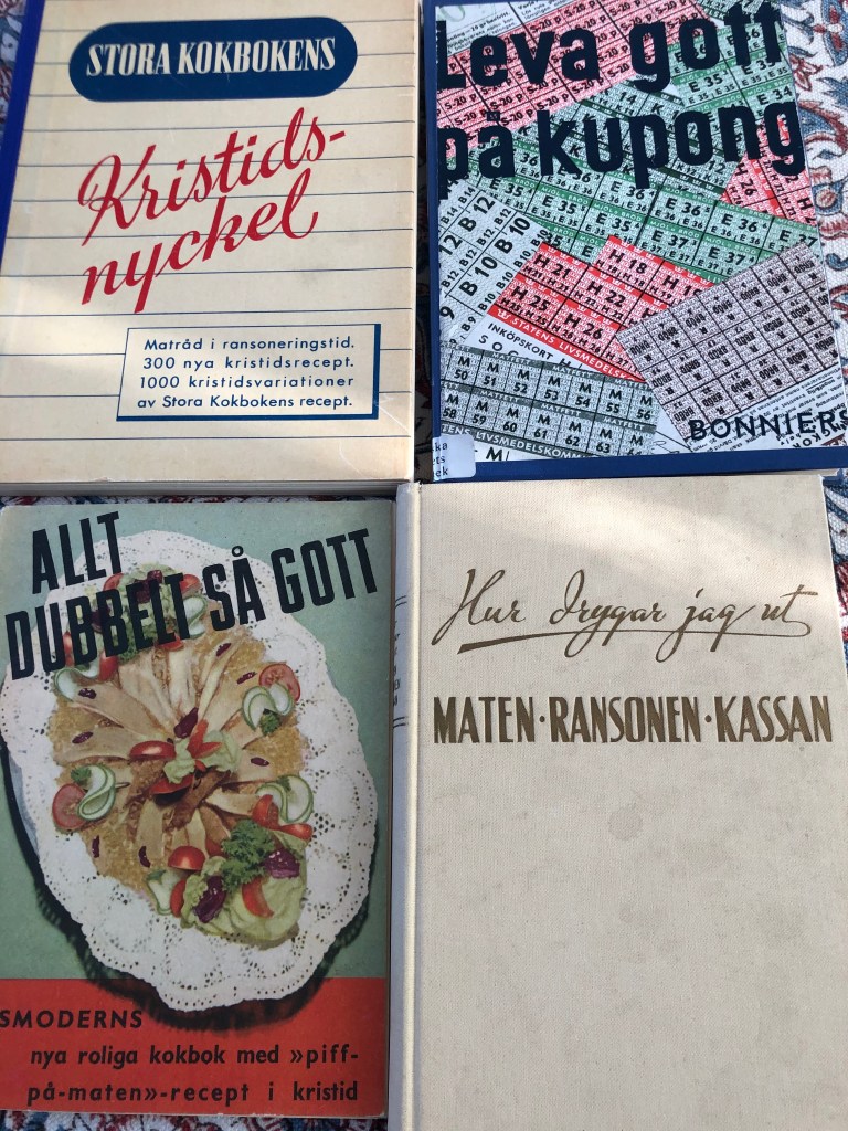 Dags att återvända till fyrtiotalet alltså. Och inte bara till Husmoderns Köksalmanack. Det gavs ut många andra kokböcker och broschyrer under kriget om hur man får maten att räcka och hur man får det att smaka gott med små medel. Vi kommer att dyka ner i dessa och även plocka fram hållbara recept från andra årtionden, både senare och tidigare. Det kan t.o.m. finnas en del att lära av första världskrigets matlagare.