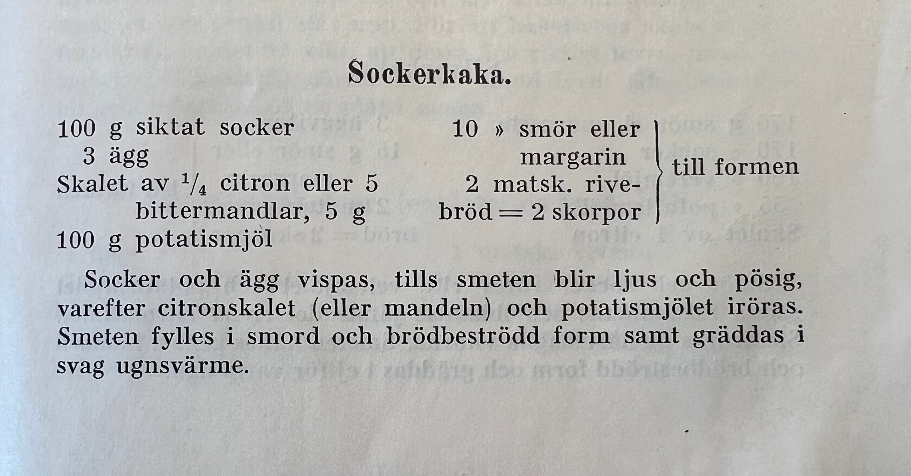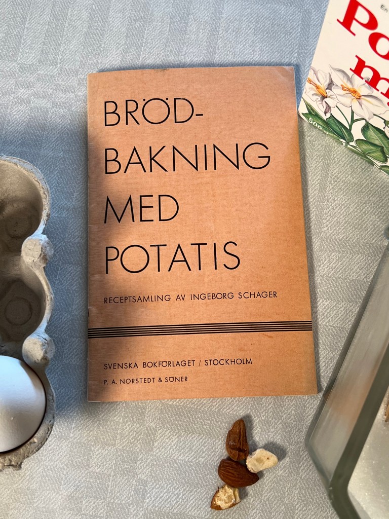Några dagar senare bakade vi en sockerkaka från broschyren ”Brödbakning med potatis” från 1940.