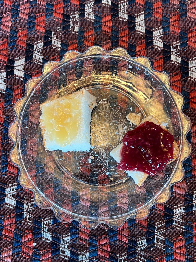 Vi lade lite sylt på sockerkasskivorna. Då smakade det bättre.