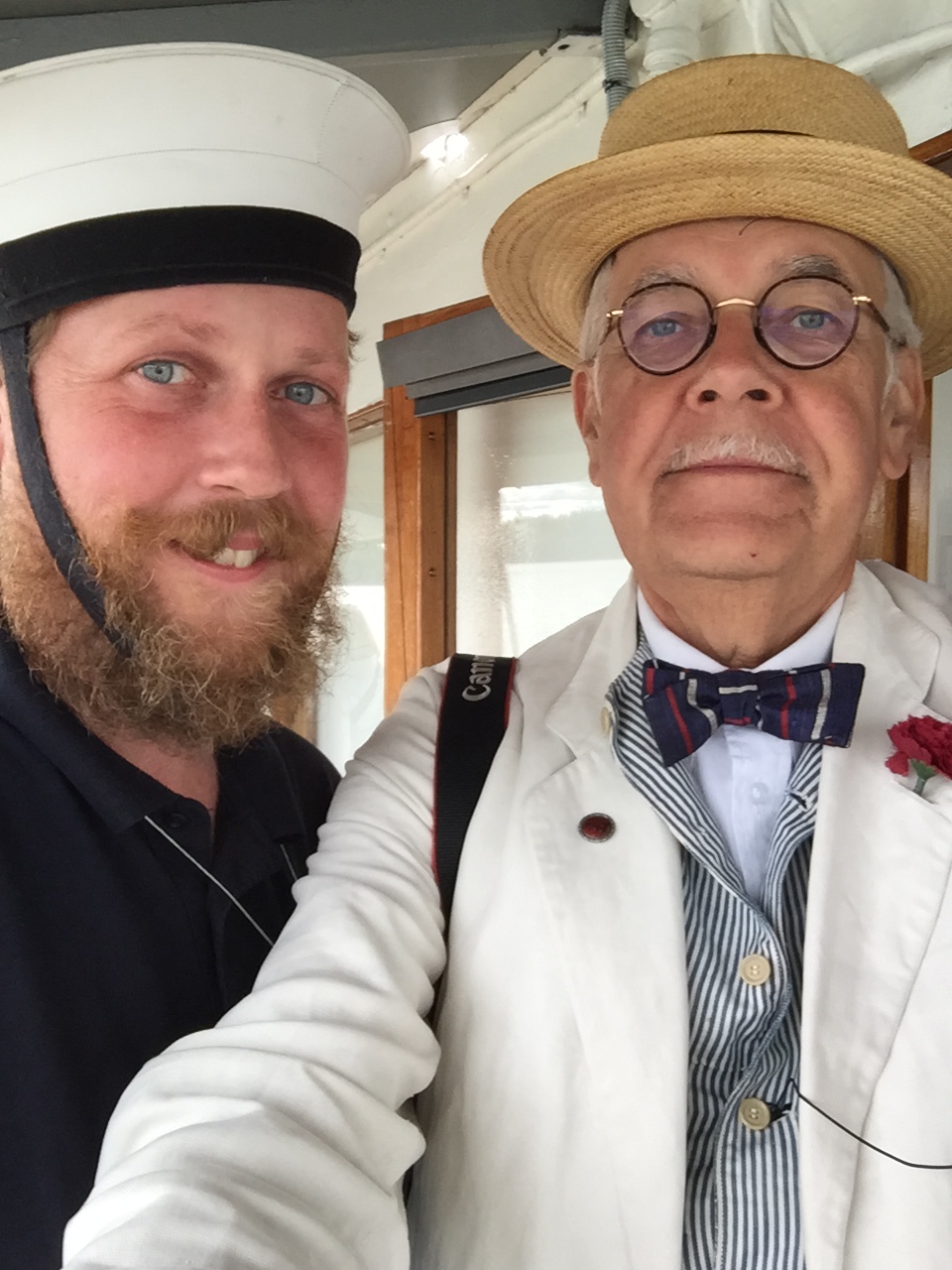 Vintageintresserade matrosen Markus med Vintagemannen. Han har en egen brandbil från 1938.